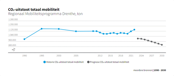 De CO ₂ -uitstoot in mobiliteit is sinds 1990 gestegen. Dit maakt het moeilijker om de klimaatdoelen voor 2030 te halen. We zetten in op minder mobiliteit, ander vervoer en schonere technieken zoals elektrisch rijden. Alleen met deze combinatie kunnen we de noodzakelijke CO ₂ -reductie realiseren.